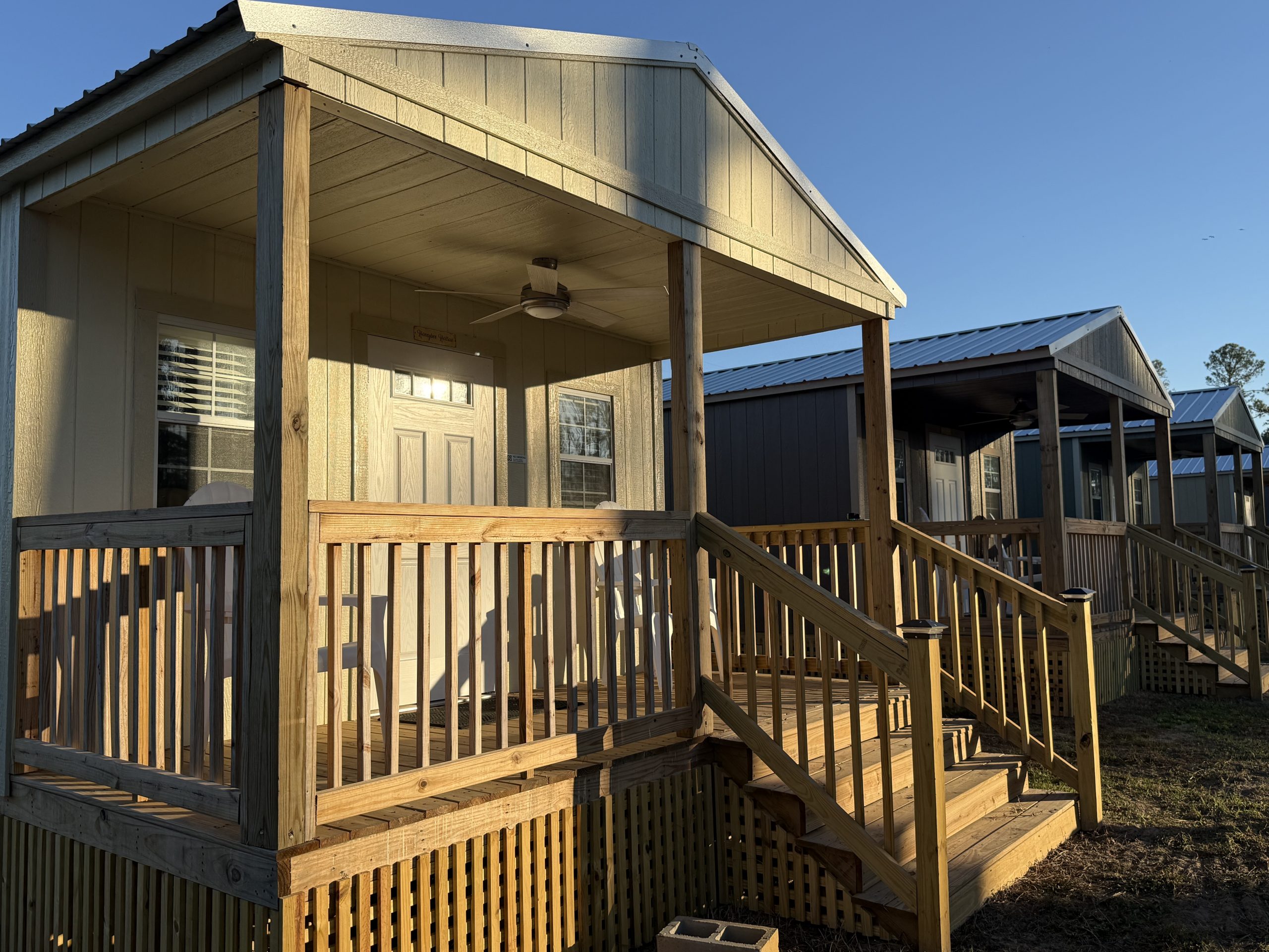 Honeybee Hollow sits at the end of our line of cabins, wrapped in warm cream siding that catches the afternoon sun just right.