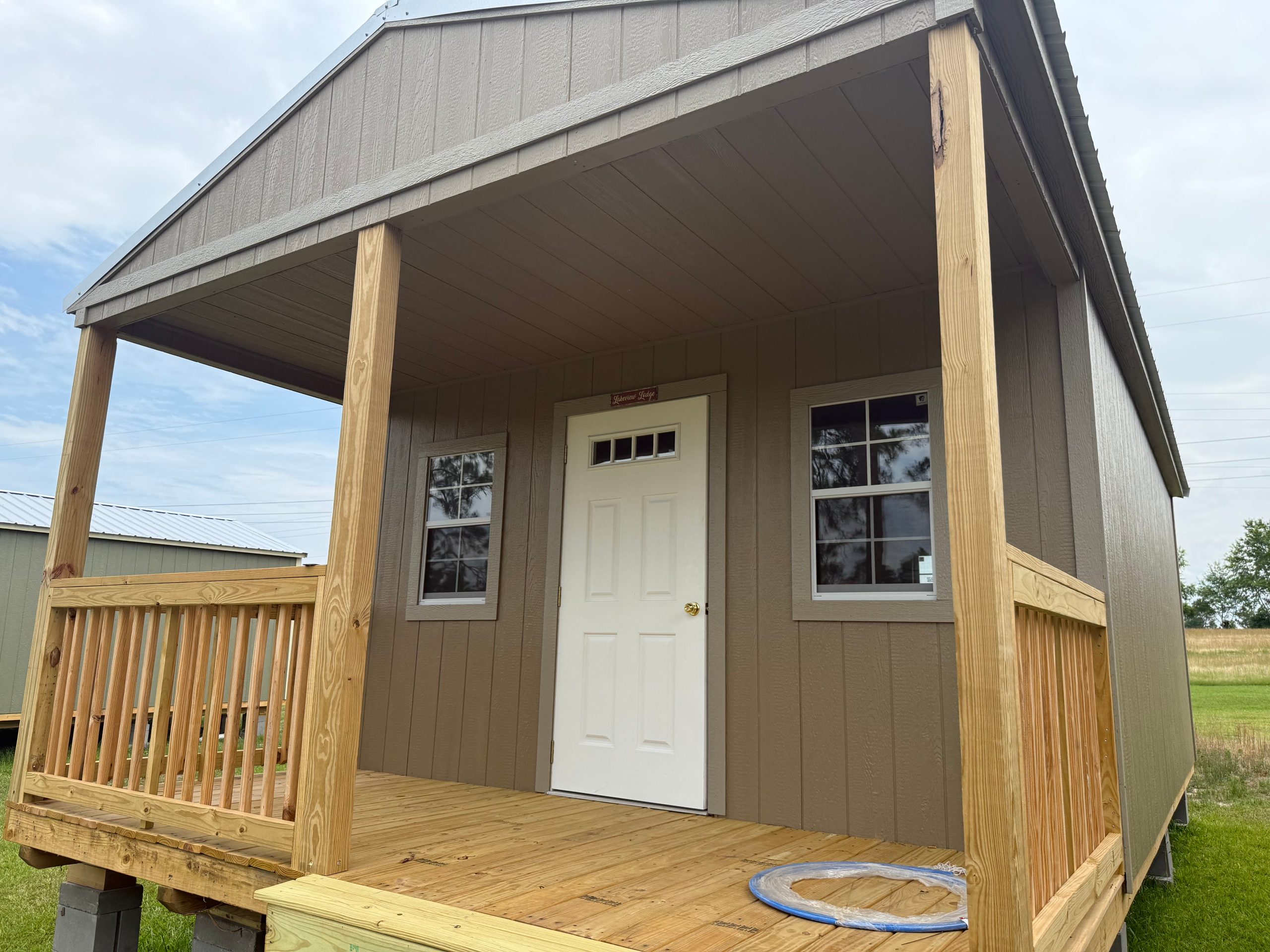 Lakeview Lodge sleeps two adults and offers the most central location on the property—perfect for couples who want to be at the heart of the action, families renting multiple cabins for reunions, or anyone who takes their sunset views seriously. Exterior security cameras provide peace of mind.